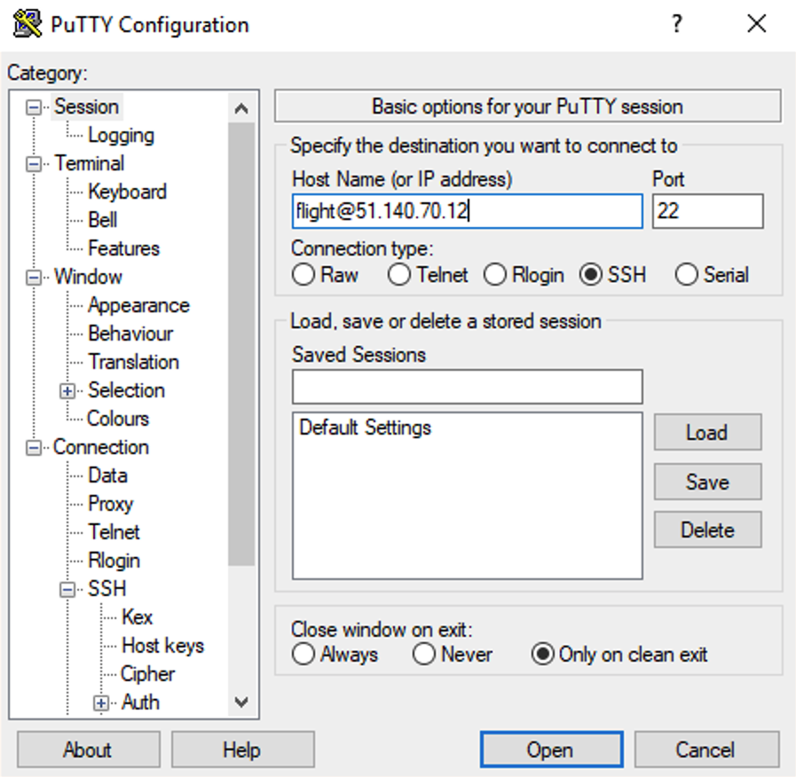 ssh -i mypublickey.pem flight@52.50.141.144Where: