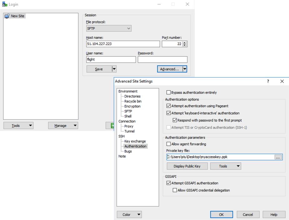 Advancedbox and navigate to theSSHsub-menu, and theAuthenticationitem - In the