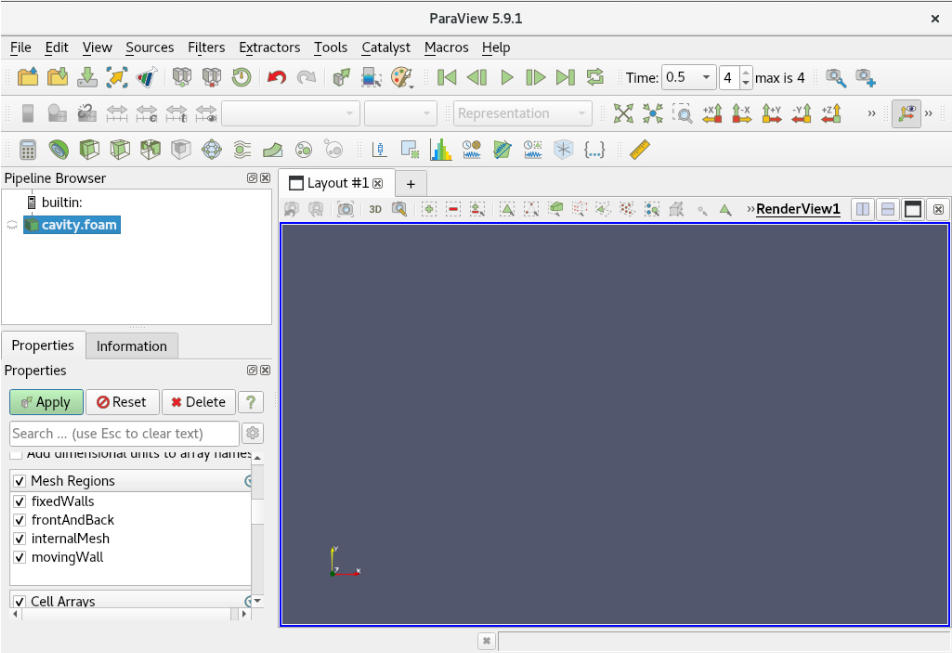 Navigate to the cavity directory and launch the paraFoam viewer: